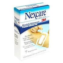 2-3/8 x 4 inch. Breathable, keeps out dirt and germs. Waterproof in bath or shower. Non-stick pad with clear adhesive cover. Hospital proven. Nexcare Absolute Waterproof Premium Adhesive Pad is a waterproof dressing which consists of non-stick, absorbent pad bonded to a large thin film backing coated with a hypoallergenic, water resistant adhesive. Use Nexcare Absolute Waterproof Premium Adhesive Pad to protect wounds such as cuts, burns, abrasions and post-surgical incisions. Hospital Name: 3M Tegaderm Dressing + Pad. Hypoallergenic. Sterility guaranteed unless individual wrapper is opened or damaged. Made in USA.